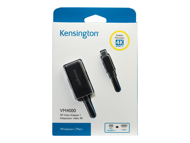 Produktbeskrivelse Kensington VM4000 4K Video Adapter - video adapter Kabel Video adapter Kontakt Mini DisplayPort - hann Kontakt (annen ende) HDMI - hunn -