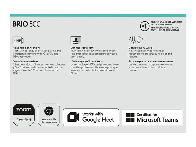 Med Brio 500 kan du se og høres ut som om du er på alle møter. RightLight automatisk lyskorrigering hjelper deg med å se tydelig ut i alle lysforhold. RightSight automatisk innramming sentrerer kameraet mens du presenterer, og med Show-modus kan du raskt dele arbeidet på skrivebordet. Opplev autentiske møter og vis deg fra din beste side i hver eneste videosamtale.