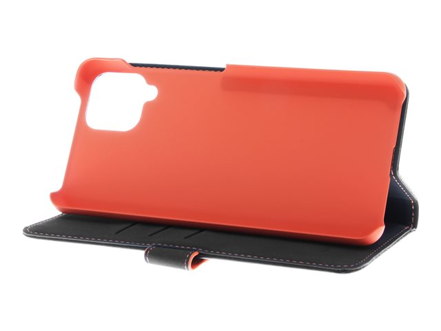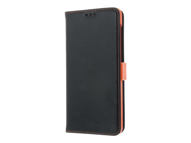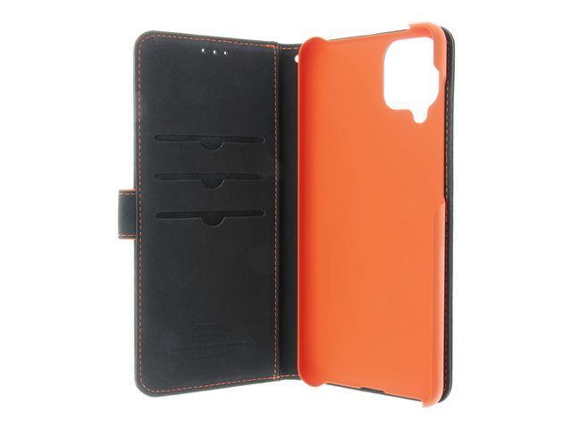 ekte skinn, termoplast-polyuretan (TPU), polyuretanpolstring - svart, oransje, galvanisert bronsering - for Samsung Galaxy A12