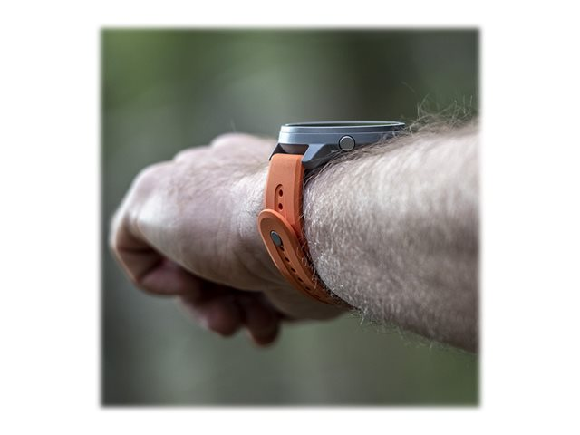 Made of durable silicone, this stylish quick-release strap is comfortable?to wear and easy to change without any additional tools. Featuring a pin closure instead of loops, the strap is?sleek, durable, and easy to clean, with a?snug fit on the wrist that makes it ideal for outdoor endurance sports. The package includes two strap lengths.