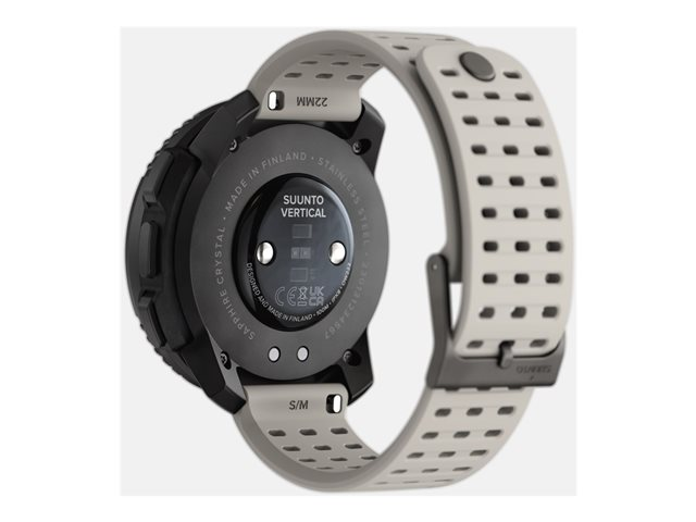 The Suunto Vertical sport watch is designed for athletes and adventurers seeking a durable device that keeps pace with their active lifestyle. With a robust glass fiber reinforced polyamide case and sapphire glass protection, it stands up to the toughest conditions, water-resistant up to 100 m. It features a comprehensive suite of sensors, including an altimeter, barometer, and digital compass, alongside advanced GPS/GLONASS/Galileo/BeiDou/QZSS navigation capabilities for precise tracking and route planning.