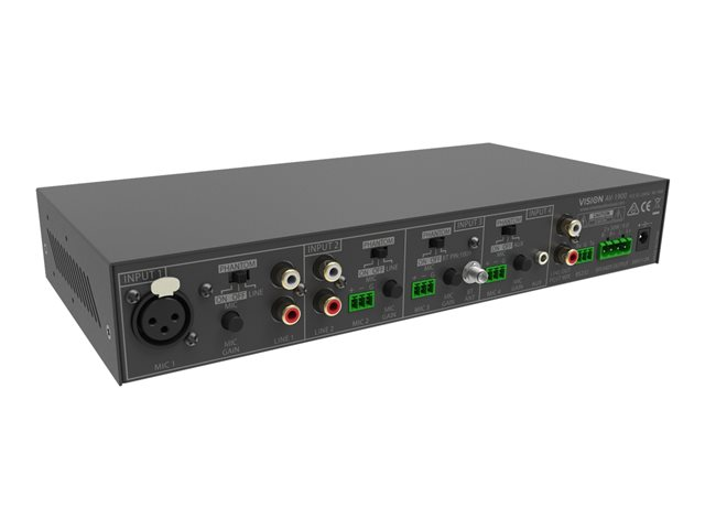The AV-1900 is a highly capable mixer-amplifier packed with useful features to make it as easy as possible to operate. It is designed for use in demanding applications like meeting spaces, small auditoriums, lecture theaters, school halls, and small churches. It has professional audio features normally only found in much more expensive mixer amps.