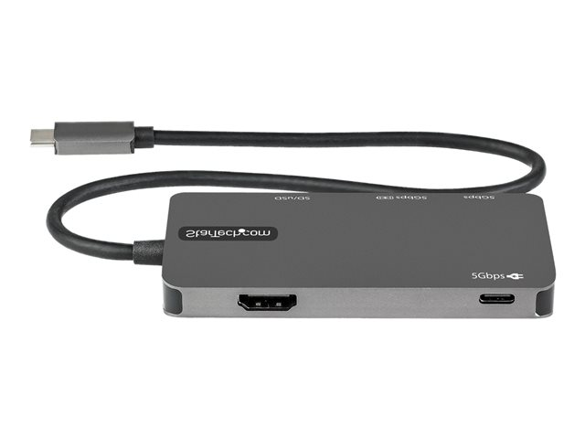StarTech.com USB C Multiport Adapter, USB-C to 4K 30Hz HDMI, 100W Power Delivery Pass-through, SD/MicroSD Slot, 3-Port USB 3.0 Hub, USB Type-C Mini Dock, 12" (30cm) Long Attached Cable