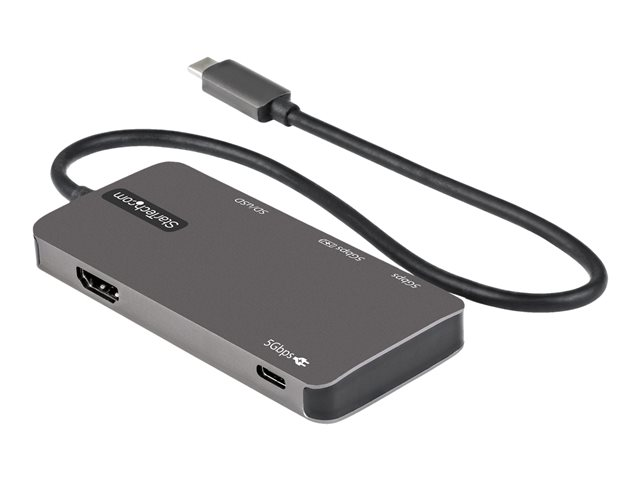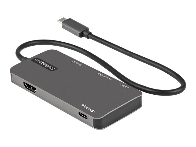 This USB-C multiport adapter with HDMI turns your USB-C laptop into a workstation, anywhere you go. The USB Type-C multiport adapter provides 4K HDMI video output, two USB 3.2 Gen 2 Type-A (10Gbps) ports, and a USB Type-C port (power/data), all through one connection to your laptop's USB-C or Thunderbolt 3 port. Plus, it offers advanced charging through USB Power Delivery 3.0 and an extra-long attached host cable for an extended reach to offer more set up flexibility.