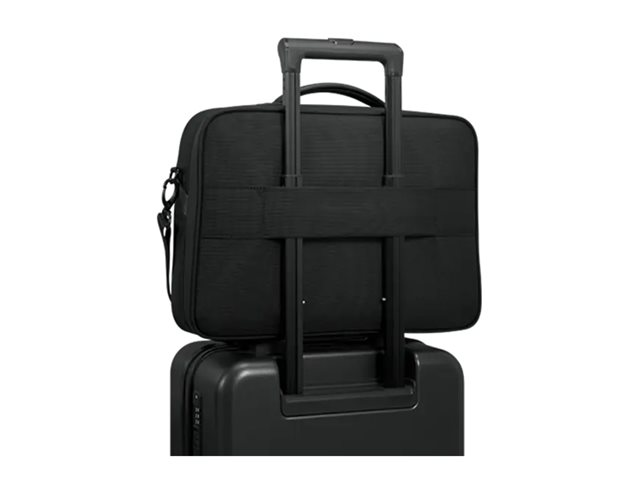 - Main compartment features a full workstation and storage pockets for accessories and other small items, including RFID blocking pocket and key fob