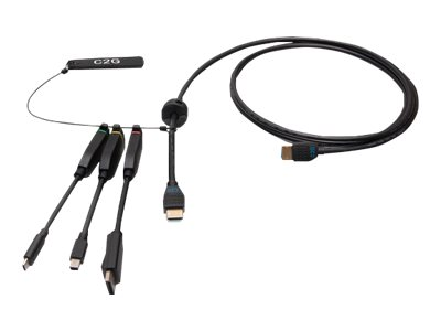 C2G 6ft (1.8m) 4K HDMI Premium Cable and Dongle Adapter Ring with Color Coded Mini DisplayPort, DisplayPort, and USB-C - Videoadaptersett - svart - gullglimtkontakter, 4K 60Hz støtte, 4K30Hz-støtte (DisplayPort), 4K30Hz-støtte (mDP)
