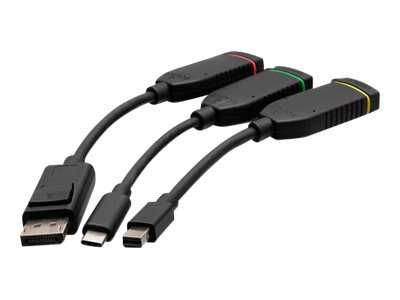 | Antall inkludert x Type | Videokabel - 19-pin HDMI type A (hann) til 19-pin HDMI type A (hann), 1.8 m Video adapter - 20-pins DisplayPort (hann) til 19-pin HDMI type A (hunn) Video adapter - Mini DisplayPort (hann) til 19-pin HDMI type A (hunn) Video adapter - 24-pins USB-C (hann) til 19-pin HDMI type A (hunn) |