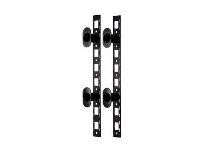 This vertical fiber panel is designed to organize power or data cables within a rack or enclosure.