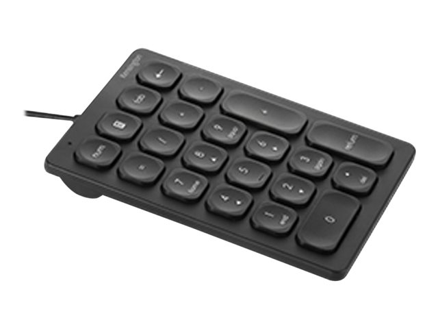 • Wired Numeric Keypad features 21 scissor keys with four shortcut keys, a Num Lock indicator, USB-A connectivity, and anti-slip foot pads