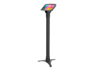 Vårt justerbare stativ kan stilles inn i ulike høyder: 39" - 45" / 100 cm - 115 cm, og stativet gjør det mulig å stille inn nettbrettet i enten stående eller liggende modus. Stativet er designet for maksimal stabilitet med en kraftig stålbase som gir kabelføring gjennom selve stativet. Under kabinettet er det et lite oppbevaringsrom for ladeenheten til nettbrettet.